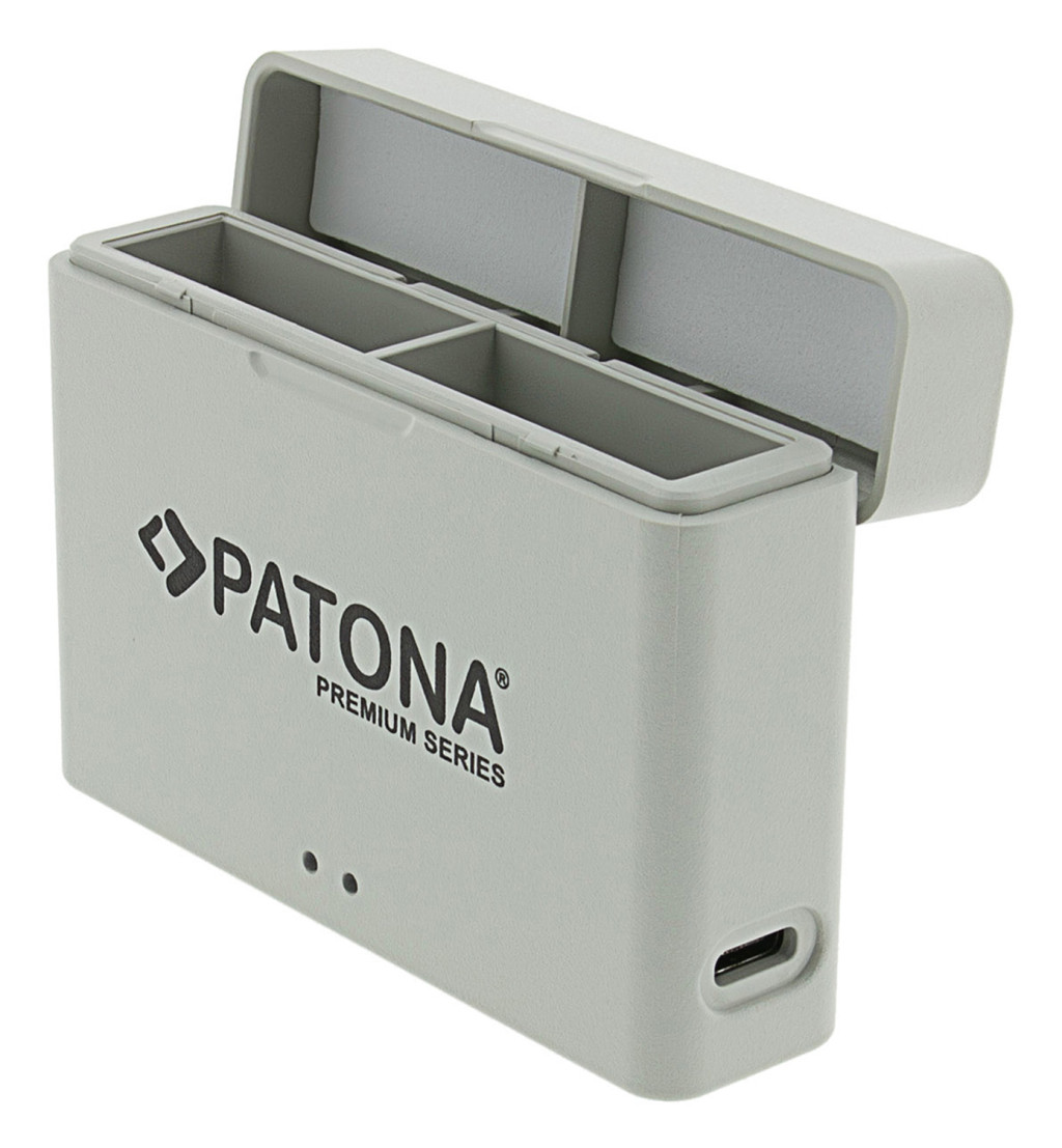 A PATONA prémium, kétcsatornás töltődobozzal a DJI Osmo Action 3, 4 és 5 kamerákhoz egy kis, praktikus dobozt kapsz, amelyben akár két akkumulátort is tölthetsz és tárolhatsz egyszerre.