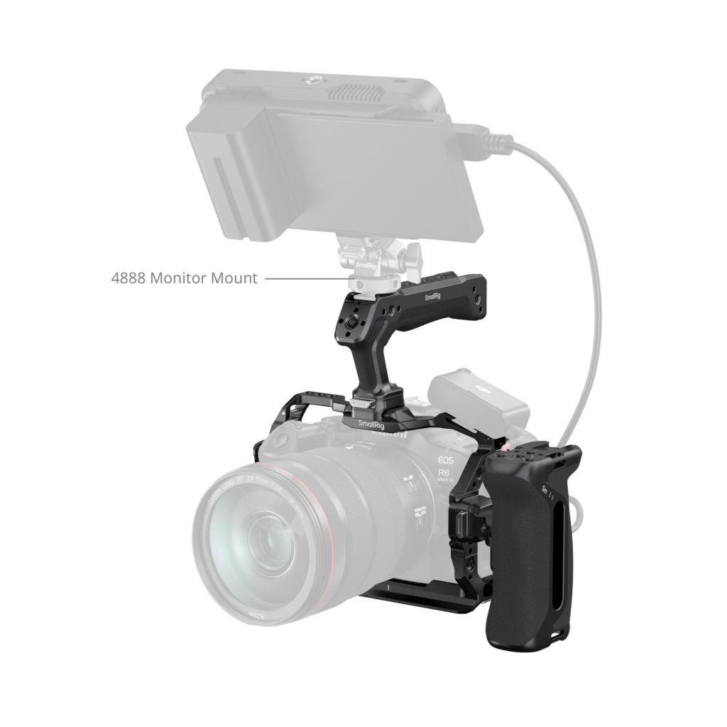 Note: When used with Cage 5958, the Canon R6 Mark II is incompatible wwith the included cable clamp. For this configuration, please purchase cable clamp 2981B separately