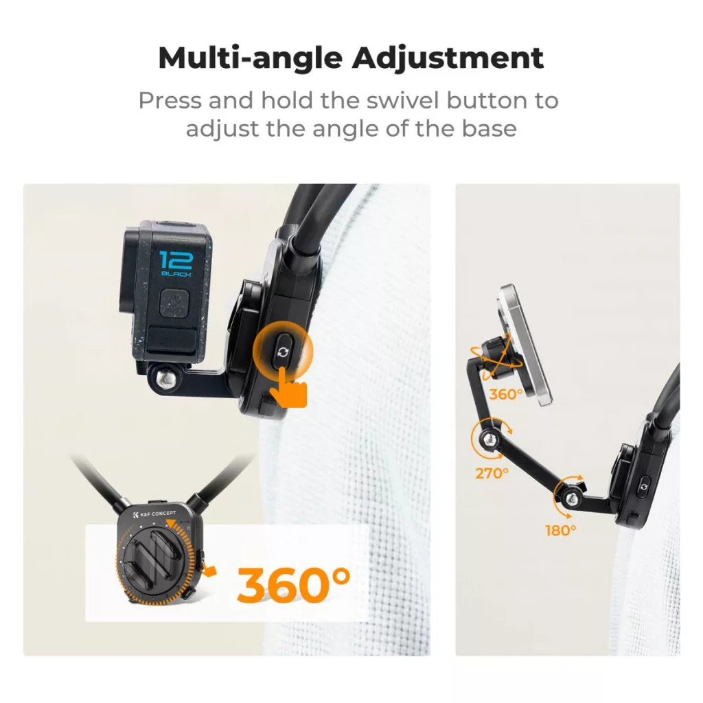 K&F Concept nyakba akasztható mágneses akciókamera és telefon tartó - MagSafe kompatibilitás, GoPro és DJI Pocket 3 adapterekkel