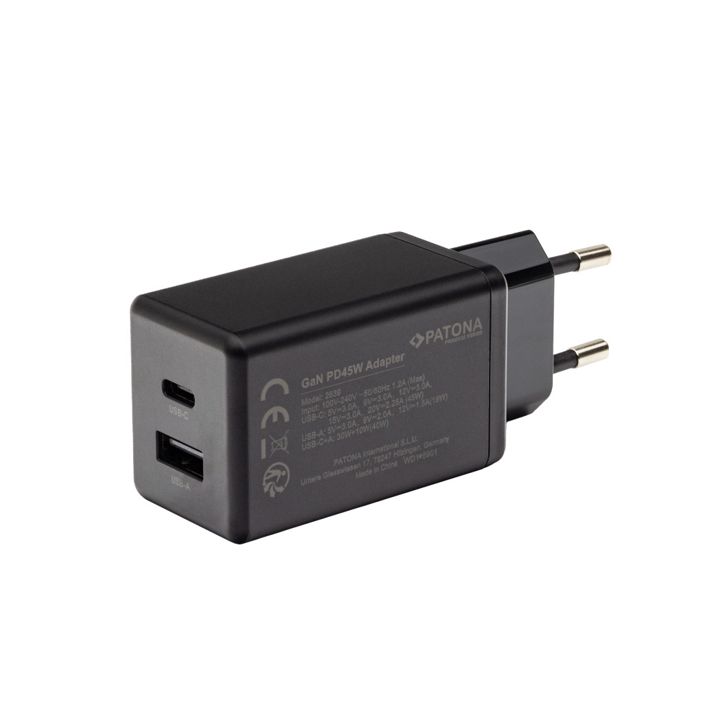 PATONA PD45W USB-C // USB-A PREMIUM töltő (PD3.0 // QC3.0)