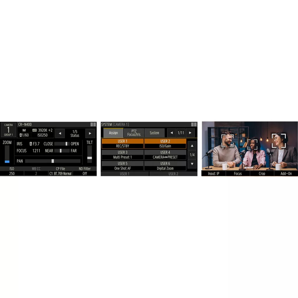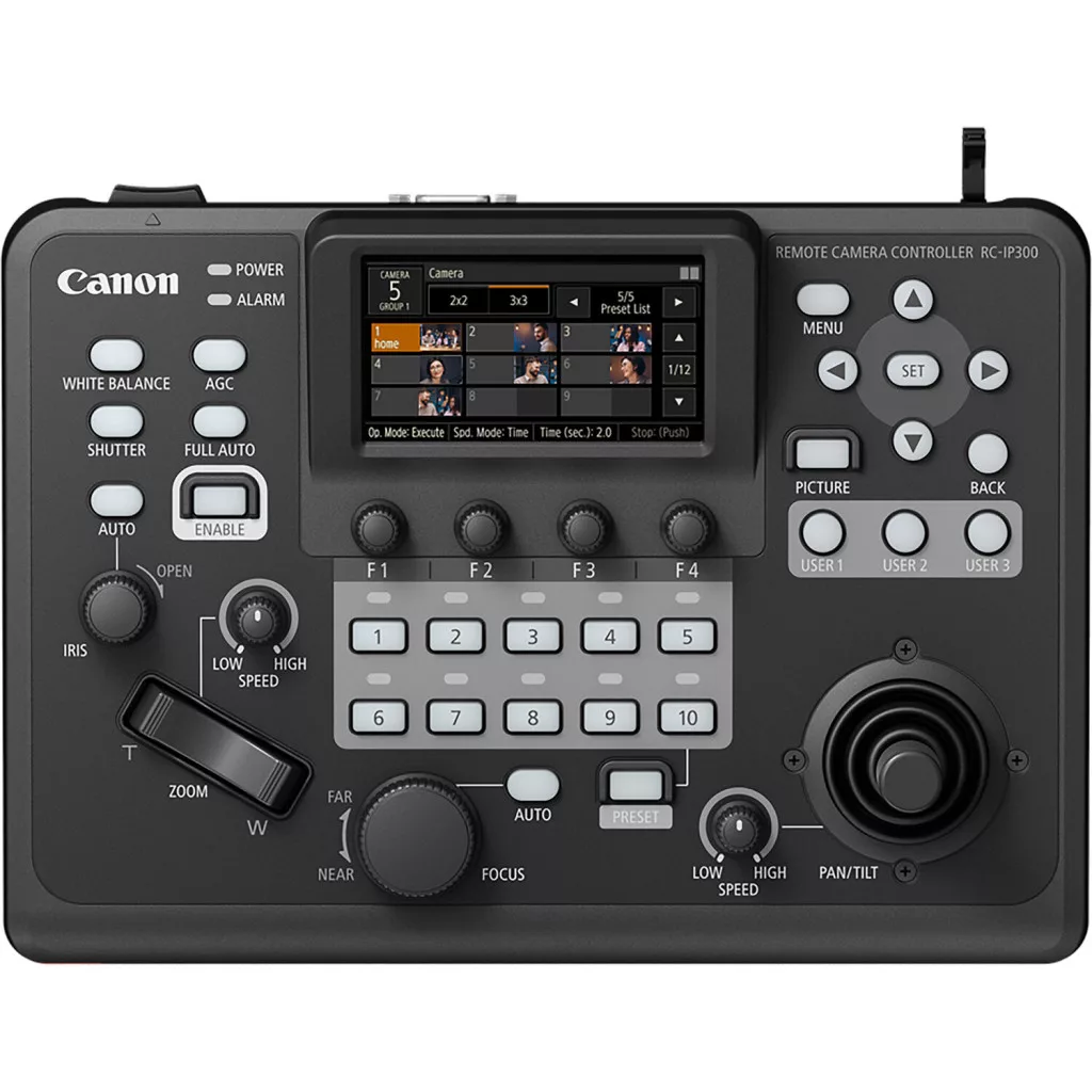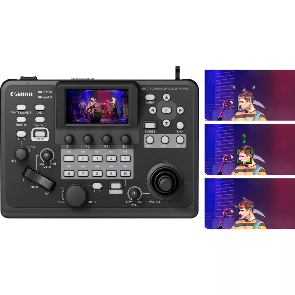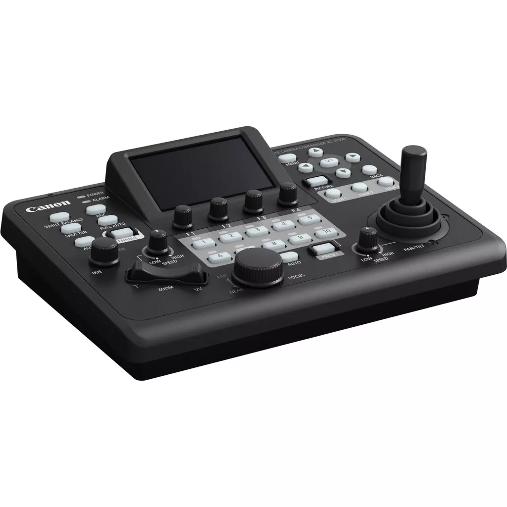 - Az RC-IP300 PTZ kameravezérlő gyors, tapintható IP-vezérlést biztosít akár 200 támogatott Canon PTZ kamerához. Ez a kompakt vezérlő egy 3,5 hüvelykes érintőképernyős kijelzővel rendelkezik, amely OSD menüket kínál a kompatibilis kamerákhoz, kamerakonfigurációkhoz, élőképekhez és érintéses autofókuszhoz.