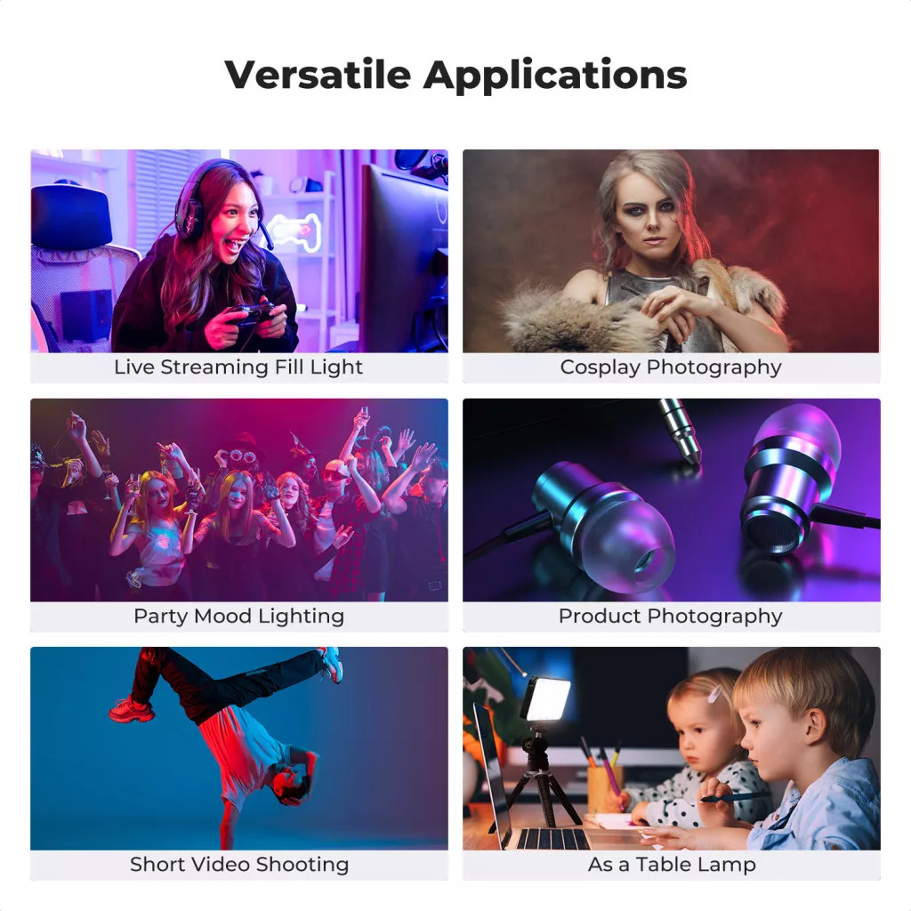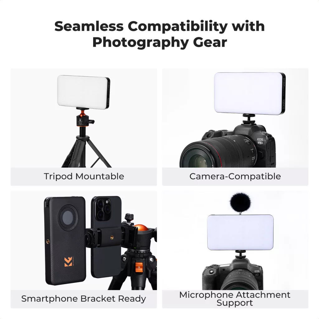 A K&F Concept 12W RGB LED lámpa egy kompakt és sokoldalú fényforrás, amely ideális fotózáshoz, videózáshoz, vlogoláshoz és tartalomgyártáshoz.